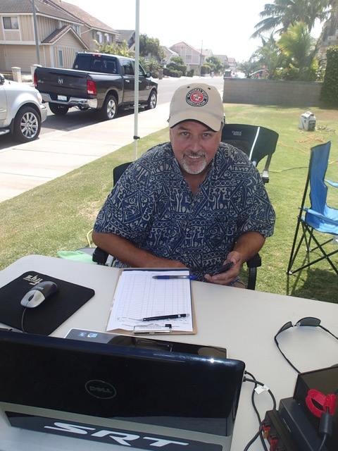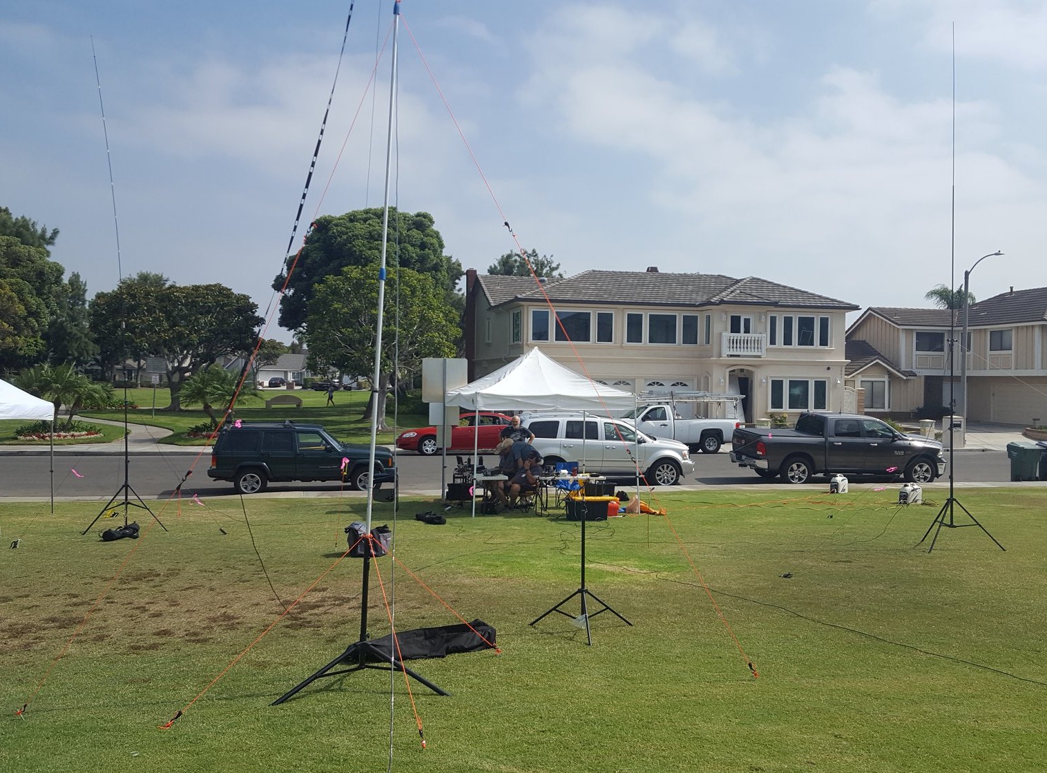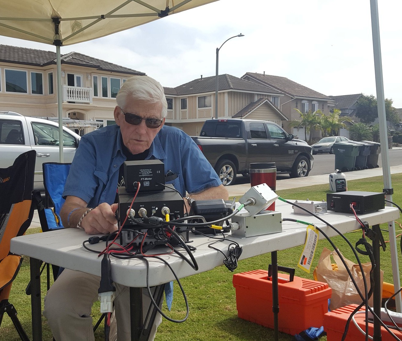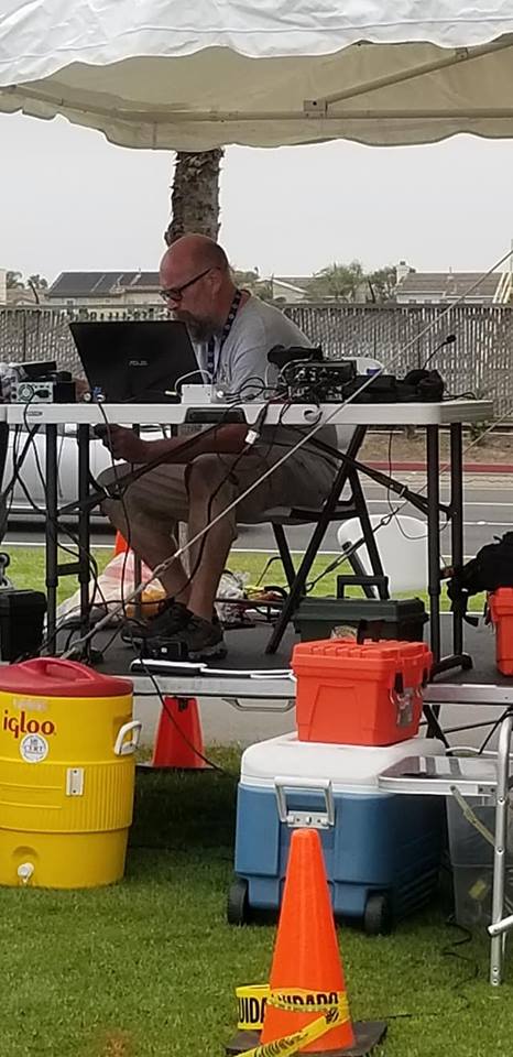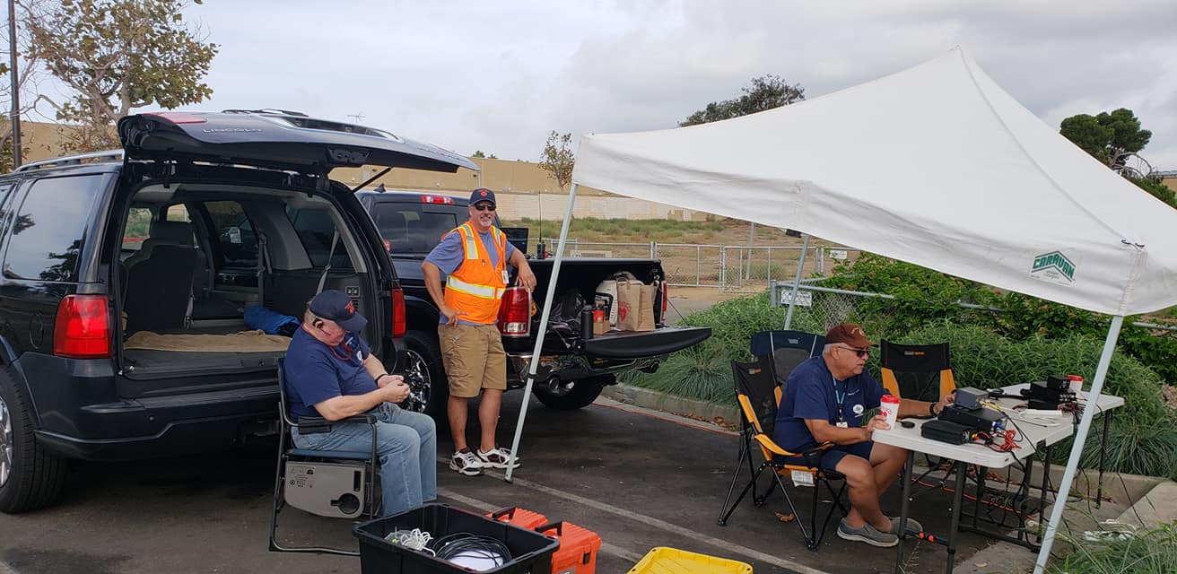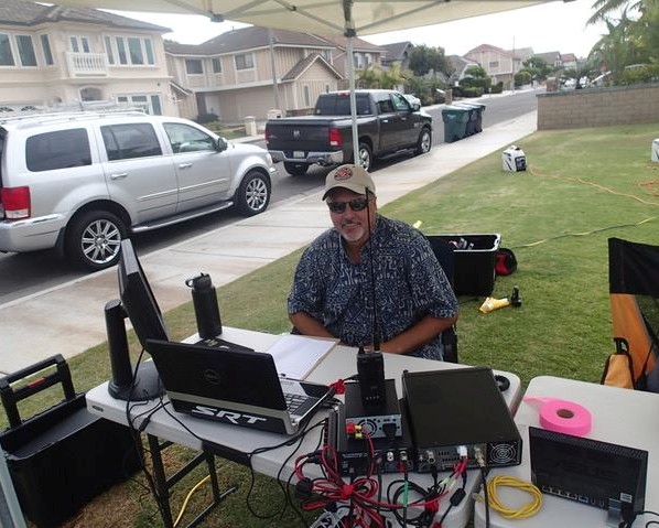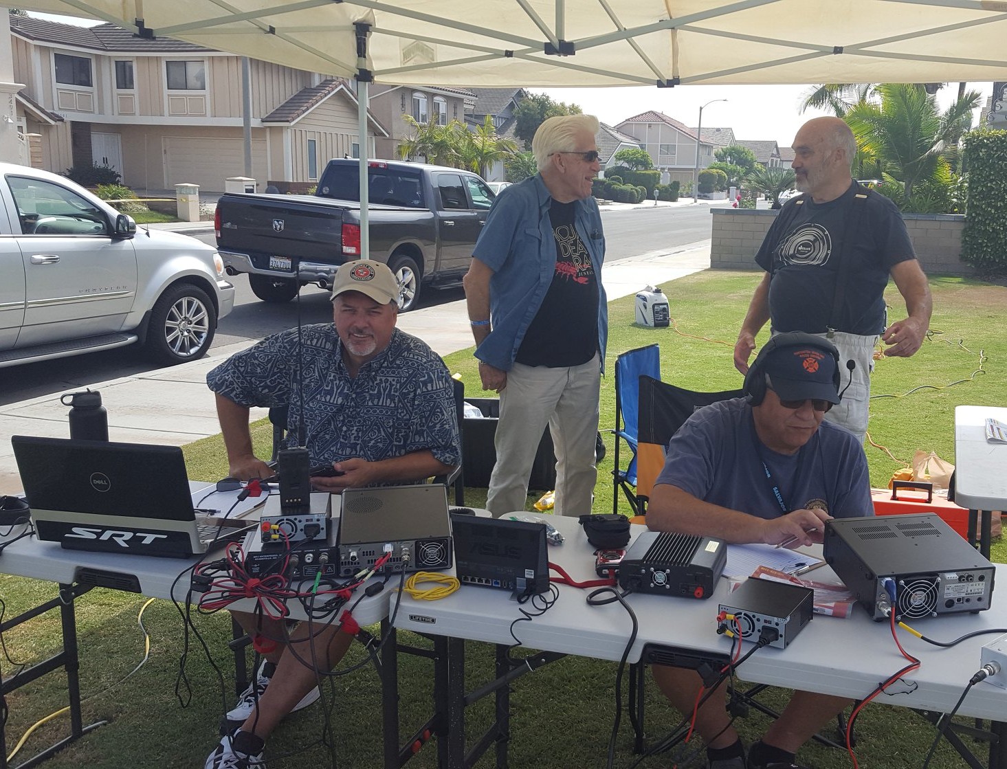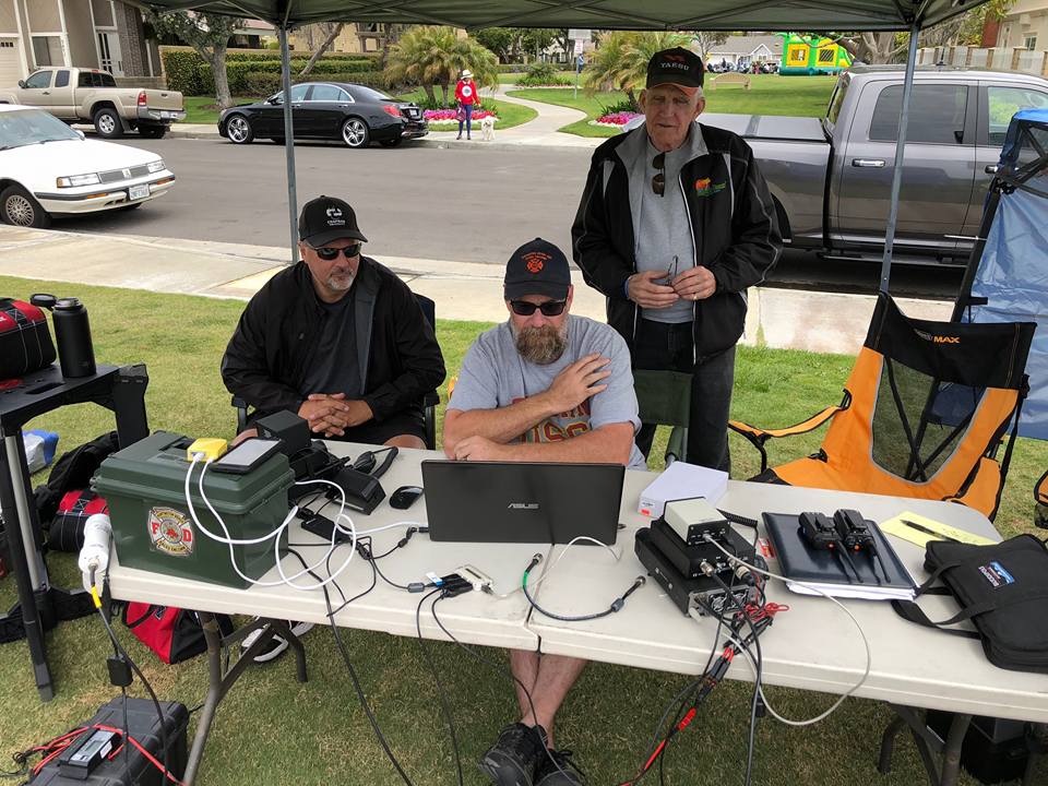 Huntington Beach RACES participates in Orange County's City/County RACES & MOU Auxiliary Communications Service (ACS) Exercises. These exercises are a simulation of local repeater communications failure and the ability to establish backup communications. This is a field-deployment exercise and focuses on alternative means of communications in case of repeater problems. During a recent exercise, HB RACES members Greg Turlis (K6GAT), Jon Welfringer (WB6OZD), Jim Hansen(KG6ZDP) and Roy Hodak (W6OGR) setup in Bartlet Park in Huntington Beach to test operations on 2m & 70cm simplex, HF 60m band and WinLink (Radio/PC packet data).