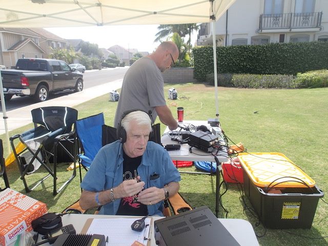 Huntington Beach RACES members practice their emergency radio communications skills in a nation-wide drill called “Field Day”. Held every year in June, this event is located on the bluffs at PCH and Golden West. The public is also invited to come try their hand at getting on the air. During Field Day, amateur radio operators from the US and Canada compete over a 24 hour period to make global contacts with other hams. This is done with the goal of demonstrating portable and completely independent radio communications.
